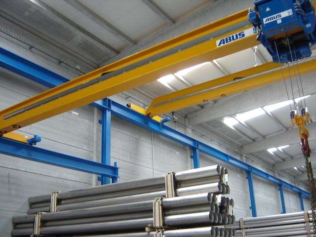 其中一臺是起重量為8噸、跨度為14米的安博ELK型單梁橋式起重機,另一臺是起重量為5噸、跨度為14米的安博ELV型單梁橋式起重機。這兩臺起重機能夠讓公司靈活高效地進行工作,它們既可以在兩個水平面獨立使用,也可以協(xié)同運行,由于共用工作區(qū),負載可以輕易地轉(zhuǎn)移于兩個起重機之間。