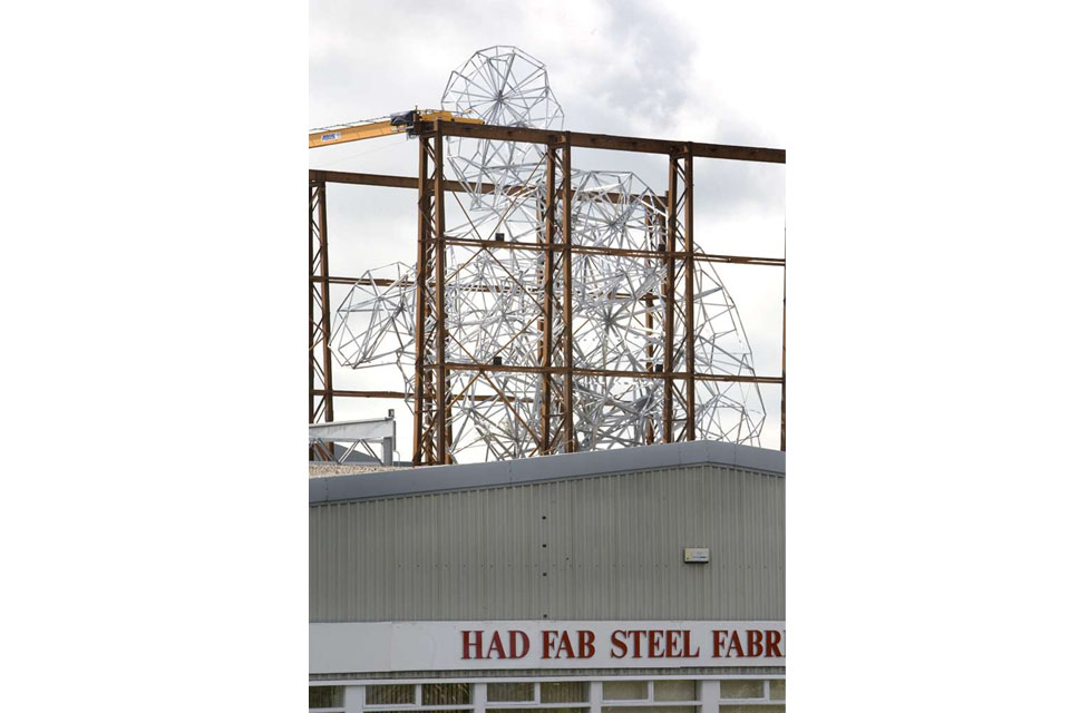 當走近英國藝術(shù)家安東尼·戈姆利(Antony Gormly.)設(shè)計的現(xiàn)代藝術(shù)雕塑《曝光》(Exposure)時,你可能會覺得自己渺小得像是喬納森·斯威夫特(Jonathan Swift's)小說《格列佛游記》中的小人兒。這座雕塑高25.6米,重60噸,位于荷蘭阿姆斯特丹以東、蘇伊德西海岸的萊利斯塔德。 Had Fab Steel Fabricators(www.hadfab.co.uk)公司地處愛丁堡附近的Tranent,是一家電力供應(yīng)行業(yè)的專業(yè)鋼鐵制造商。該司受委托制造這個雕塑,并由安博起重機有限公司(www.abuscranes.co.uk)協(xié)助完成該項目。安博提供和安裝了五臺單梁橋式起重機。雕塑結(jié)構(gòu)完全由軋制角鋼組成,它不僅獲得了TEKLA年度設(shè)計比賽150噸以下級別的獎項,還贏得了TEKLA全球BIM的比賽大獎,TEKLA是計算和設(shè)計雕塑的軟件。