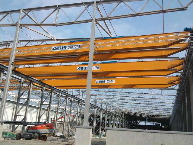 LECOR Stalteknik信賴于安博公司提供其所需的起重機(jī)。LECOR Stalteknik和安博公司的代表瑞典子公司ABUS KransystemAB(www.abus-kransystem.se)一同回顧了雙方長(zhǎng)期而成功的合作。安博提供了7臺(tái)旋臂起重機(jī)和5臺(tái)橋式起重機(jī)。這些單梁和雙梁橋式起重機(jī)用于在工廠內(nèi)運(yùn)輸大型板材。起重機(jī)的跨度為21米,負(fù)載能力分別為10噸和20噸。墻式旋臂起重機(jī)VW的負(fù)載能力為1.6噸,旋臂長(zhǎng)為4米,為各個(gè)工作站提供工作部件。整個(gè)訂單從項(xiàng)目規(guī)劃到安裝,由位于Kungsbacka(哥德堡附近)(www.jjgruppen.se)的ABUS Kransystem AB當(dāng)?shù)卮砩蘆J-Gruppen公司全程負(fù)責(zé)。