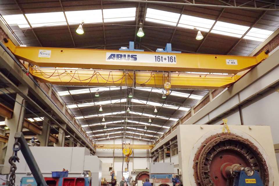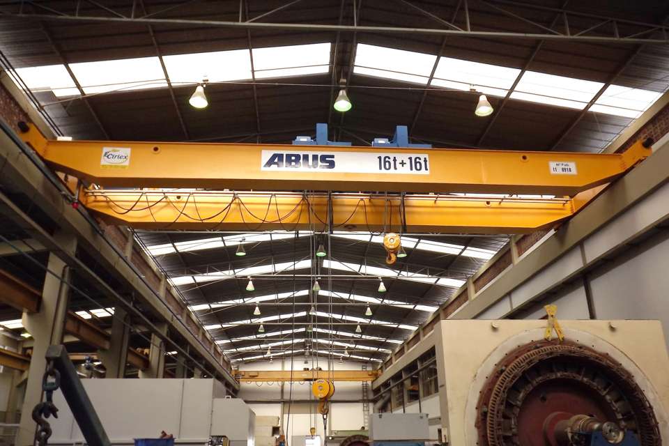 Semage Manuten??o工業(yè)有限公司(www.semage.com.br)位于巴西東南端庫里蒂巴,提供服務(wù)已25年有余。該司在眾多工業(yè)維護(hù)領(lǐng)域?qū)iT提供大型電機(jī)或低壓、中壓和高壓發(fā)電機(jī)的一體化解決方案。Semage在嘗試優(yōu)化內(nèi)部流程時遇到了物流問題,他們在尋找一家能夠提供可持續(xù)解決方案的公司。Eidt-Ciriex的初步建議是使用一臺安全起重量為32噸的橋式起重機(jī),與現(xiàn)場已有的負(fù)載能力為19噸的起重機(jī)協(xié)同工作,以起吊大型發(fā)電機(jī)。然而,在前往現(xiàn)場作進(jìn)一步協(xié)助時,Eidt-Ciriex提出了另一種選擇:在同一臺起重機(jī)上使用兩臺負(fù)載能力為16噸的鋼絲繩葫蘆。
