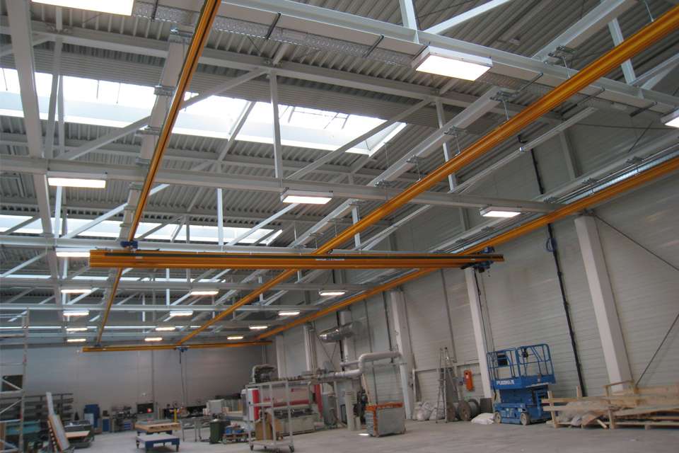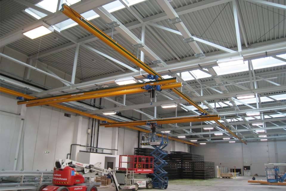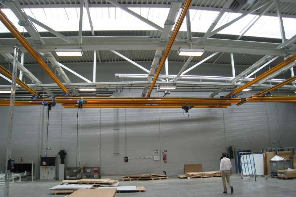 多年來(lái),安博起重和奧地利安博代理Klaus Schneider公司(www.abuskrane.at)為AMARI不同產(chǎn)品的生產(chǎn)過(guò)程提供了支持。AMARI主要使用輕型懸掛系統(tǒng)HB來(lái)運(yùn)輸生產(chǎn)區(qū)域內(nèi)250公斤至1600公斤的貨物。新的生產(chǎn)在規(guī)劃之初,Schneider公司及其服務(wù)合作伙伴Krantechnik公司便參與其中。他們與AMARI負(fù)責(zé)規(guī)劃和生產(chǎn)的人員一起,訪問(wèn)了其他幾家在材料處理方面有類似要求的公司,這些公司均已建立了必要的材料處理系統(tǒng)。初始階段過(guò)后,新的建筑完全圍繞一個(gè)對(duì)HB系統(tǒng)優(yōu)化的鋼網(wǎng)進(jìn)行規(guī)劃,以確保生產(chǎn)過(guò)程如果在未來(lái)發(fā)生變化、需要重新配置起重機(jī)系統(tǒng)的情況下,能夠保持最大的靈活性。