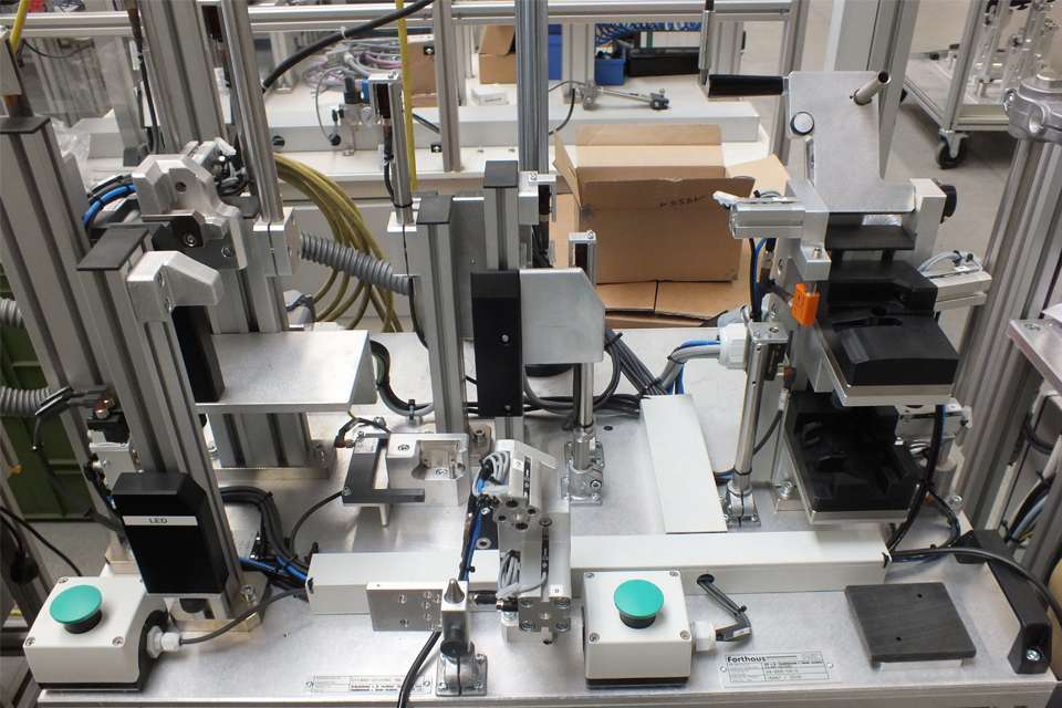 在生產(chǎn)過程中,HELLA和BHTC都依賴于專業(yè)機(jī)械和夾具制造領(lǐng)域的高質(zhì)量供應(yīng)商。這些供應(yīng)商立足于Westphalia東部的汽車行業(yè)。其中一家是位于Langenberg的Forthaus公司(www.forthaus.com),該司成立于1990年,致力于開發(fā)、生產(chǎn)用于在不同生產(chǎn)階段裝配大燈和車內(nèi)氣候控制設(shè)備的夾具和鉆機(jī)。Forthaus還制作用于部件金屬化和噴漆的安裝夾具、壓入機(jī)以及測量和測試工程夾具。HELLA在生產(chǎn)大燈時使用了如蒸汽涂層桶、帶有反光鏡蒸汽涂層傳感器的載體,和允許根據(jù)光強(qiáng)度對燈進(jìn)行校準(zhǔn)和分級的裝置。包括6名建筑工程師在內(nèi)的30名員工團(tuán)隊負(fù)責(zé)著從首次詢價到單項協(xié)助、再到夾具交付和安裝的整個生產(chǎn)過程?,F(xiàn)場培訓(xùn)和服務(wù)也是其提供服務(wù)的一部分。Forthaus公司在自己的生產(chǎn)車間里使用了數(shù)臺包括三軸和五軸銑床在內(nèi)的數(shù)控機(jī)床,他們還擁有自己的電氣設(shè)計部門。應(yīng)用圖片顯示了一臺典型的定制壓入機(jī)。