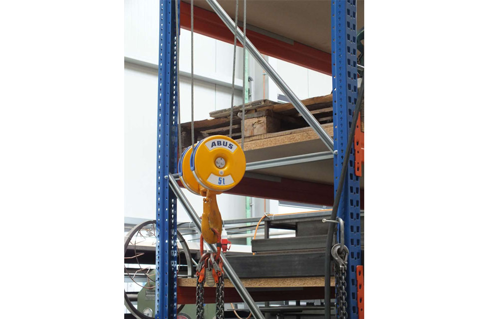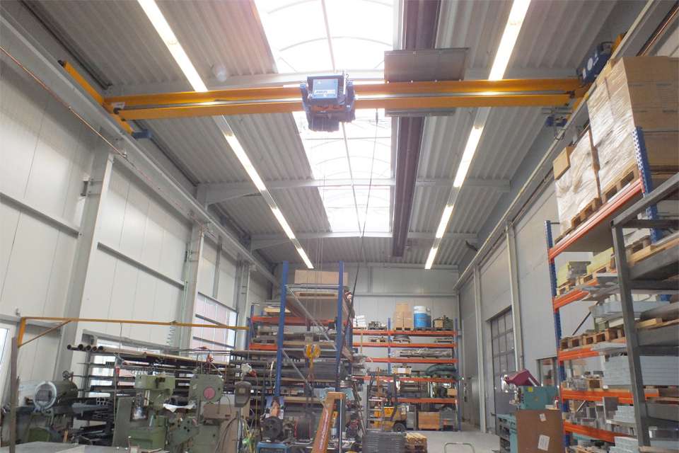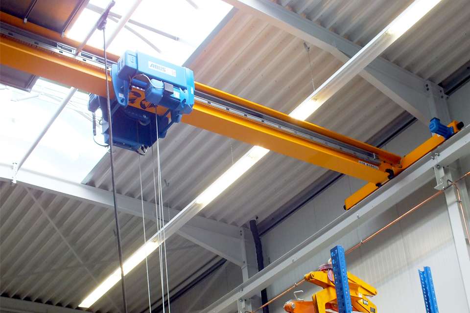 Forthaus公司使用一臺起重能力為5噸、跨度為9.77米的安博ELV型單梁橋式起重機(jī)來搬運內(nèi)部材料,并將各個部件運輸?shù)讲煌募庸ぶ行?。所用的葫蘆為GM 1000電動鋼絲繩葫蘆。單梁小車具有設(shè)計緊湊的特點,有利于適應(yīng)建筑尺寸,起重能力高達(dá)16噸,通常來說最常用的起重機(jī)。起重機(jī)通過沿主梁移動的手電門進(jìn)行控制。