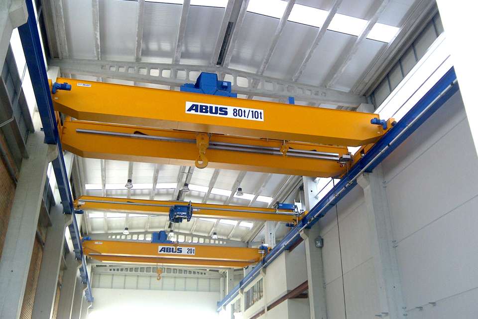 該項(xiàng)目共安裝了四臺(tái)橋式起重機(jī),以保障物料流轉(zhuǎn)于新的IBERCISA生產(chǎn)車間。其中三臺(tái)起重機(jī)的跨度為12.37米,第四臺(tái)跨度為9.3米的起重機(jī)安裝于相鄰建筑中。最大的起重機(jī)是載重能力為80/10噸的ZLK型雙梁橋式起重機(jī)。這臺(tái)起重機(jī)配有兩臺(tái)電動(dòng)葫蘆:一臺(tái)雙軌小車GM7000和一臺(tái)是雙軌小車D型GM3000。吊起的負(fù)載通常不超過10噸,因此大多數(shù)的起重作業(yè)會(huì)由小型葫蘆來完成。起重能力為80噸的電動(dòng)鋼絲繩葫蘆,通常會(huì)在需要時(shí)用于移動(dòng)已完成組裝的部件。