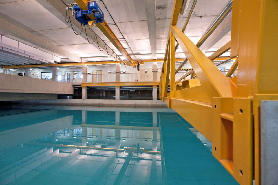該設(shè)施由愛丁堡公爵于2012年10月主持開放,有著英國最先進(jìn)的波浪池測試設(shè)備,并于35米長的海浪池上方配備了一臺安博橋式起重機(jī)。開幕式是一場壯觀盛事,有一個水鼓劇團(tuán)為一位皇家客人表演。這位皇家客人年輕時曾是一名海軍軍官,與大海有著緊密的聯(lián)系,這在英國可謂家喻戶曉。