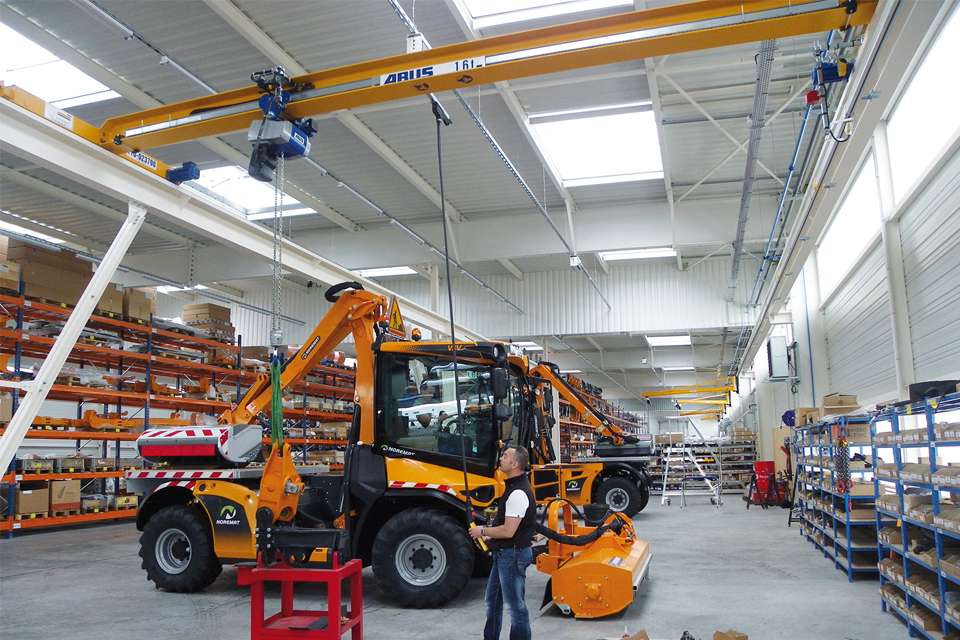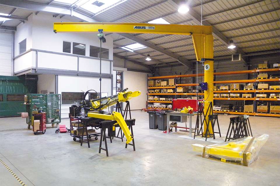特別是近十年里訂單眾多。安博法國Levage公司提供了兩臺電動環(huán)鏈葫蘆(一臺起重量為1噸的GM4,一臺起重量為500公斤的GM2),一臺起重量為250公斤、臂長2.5米的墻式旋臂起重機LW,兩臺起重量為3.2噸、跨度分別為10.23米和11.28米的ELV型橋式起重機和一臺起重量同樣為3.2噸、跨度23.3 米的ELK型橋式起重機。該司還提供了一臺起重量為1噸、臂長4米的LS立柱式懸臂起重機。提供給Noremat公司的所有起重設(shè)備都用于道路邊緣維護、景觀維護及綠色廢物回收機械的組裝。