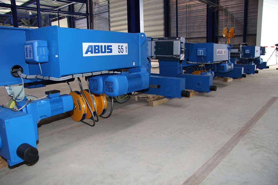 新的生產(chǎn)點使用安博橋式起重機(www.abus-kraansystemen.nl)來完成從原材料進入到成品約200,000公斤的整體內(nèi)部運輸,這為其提供了眾多物流優(yōu)勢。Stork Thermeq 在內(nèi)部運輸上使用了27臺負載能力在3,200公斤至220,000公斤之間(協(xié)同控制)的安博橋式起重機。在這些起重機包括了有9臺跨度達21米的ZLK型式雙梁橋式起重機、17臺跨度達19米的ELK型式單梁橋式起重機以及1臺EDL型懸掛式起重機。此外,Stork Thermeq還使用了各種VS型式和VW型式的立柱式和墻式旋臂起重機。