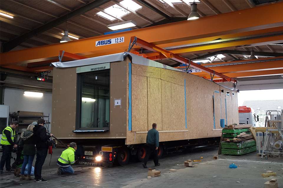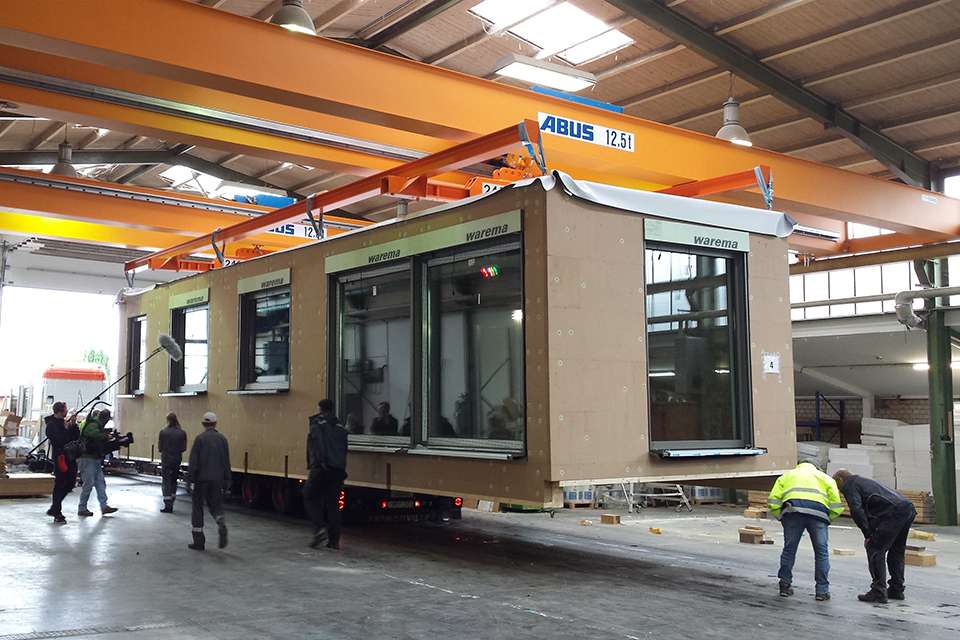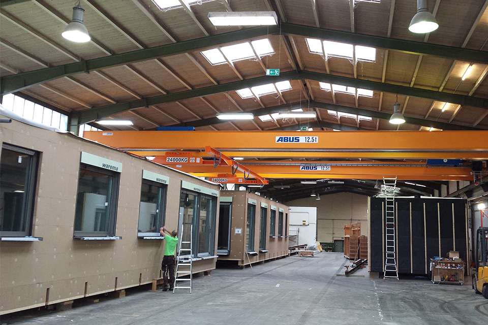 東威斯特法倫州的模塊化高級住宅專家和奧伯貝格地區(qū)的標(biāo)準(zhǔn)起重機(jī)系統(tǒng)制造商有什么共同之處?乍一看這二者關(guān)系不大。然而,細(xì)看你便會發(fā)現(xiàn)兩家公司均使用標(biāo)準(zhǔn)化組件來滿足客戶的個性化需求。在成品運(yùn)輸方面,兩家公司也都經(jīng)常面臨巨大的物流挑戰(zhàn)。在我們的案例中,作為起重機(jī)制造商而言主梁可長達(dá)40米,而我們的客戶SmartHouse公司 (www.smart-house.com) ——沒錯,這真的是這家德國公司的名字——建造房屋模塊尺寸可達(dá) 4.50米寬、14米長。該司總部位于東威斯特法倫州的L?hne,自2008年成立以來,已為私人和商業(yè)客戶提供了數(shù)百個模塊。根據(jù)客戶要求,每個模塊的起居面積可達(dá)15至50平方米,也可以將幾個模塊組合,形成復(fù)雜的生活區(qū)或辦公樓,并且可以建造兩層樓。