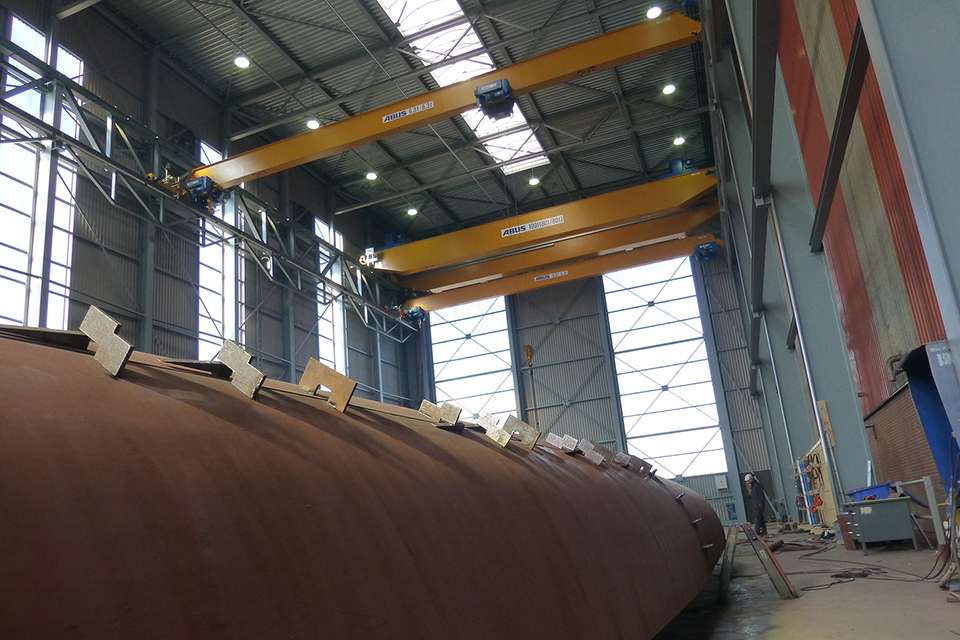 Royal Bodewes (www.royalbodewes.com)是荷蘭東北部Hoogezand的一家造船廠,自1812年存在至今。建造和交付的高質(zhì)量現(xiàn)代船舶體現(xiàn)了該司200多年的傳統(tǒng)和經(jīng)驗(yàn),這個(gè)家族企業(yè)也因此而聞名。Royal Bodewes最近在Hoogezand總部委托新建了一個(gè)生產(chǎn)車間。優(yōu)化的內(nèi)部物流與最先進(jìn)的機(jī)械相結(jié)合,將帶來更高效的生產(chǎn)和產(chǎn)量的顯著增加。起重機(jī)是提高效率這一過程的重要組成部分。長(zhǎng)期的合作是新車間裝配安博起重機(jī)的決定性因素。安博早在1977年就為老工廠提供過起重機(jī)。