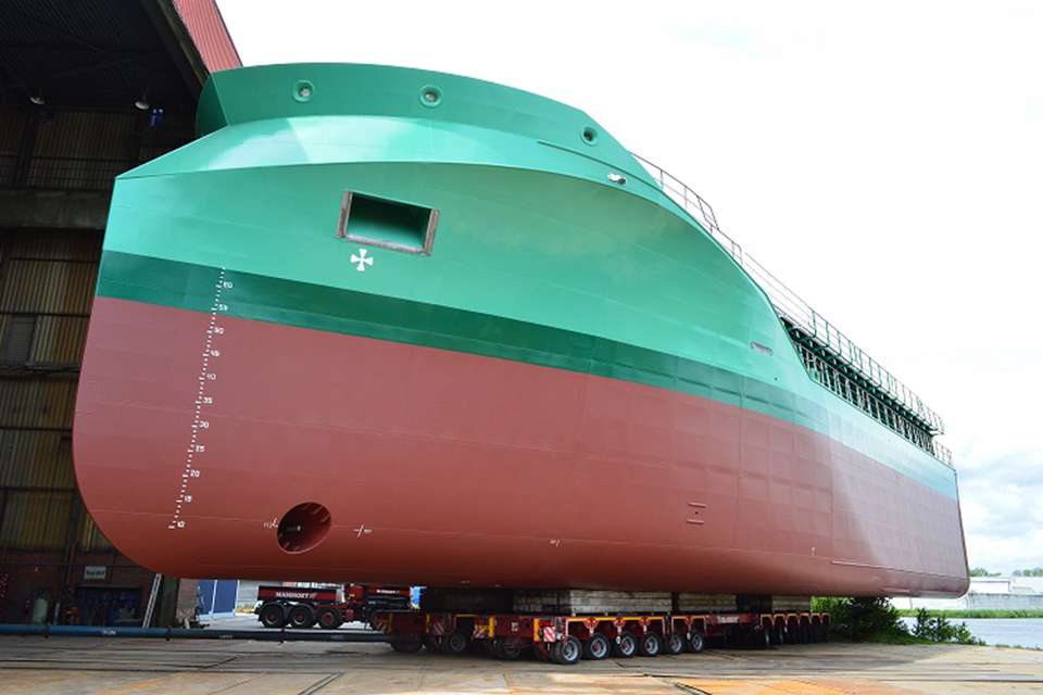 安博橋式起重機(jī)對(duì)創(chuàng)新型Bodewes船的生產(chǎn)過程而言是不可或缺的。目前,Royal Bodewes公司正在建造一系列10艘商船,每艘載重量為150噸。這些商船完全在造船廠內(nèi)建造。這些Bodewes商船最令人印象深刻的特點(diǎn)是船首的特殊形狀,它讓船只更加節(jié)能,可節(jié)省數(shù)噸燃油,該船載貨能力為222400立方英尺,總噸位在3000以下。GT或總噸位表示船舶的計(jì)量總尺寸。2015年11月13日,該系列10艘商船中的首批移交至新的船東。