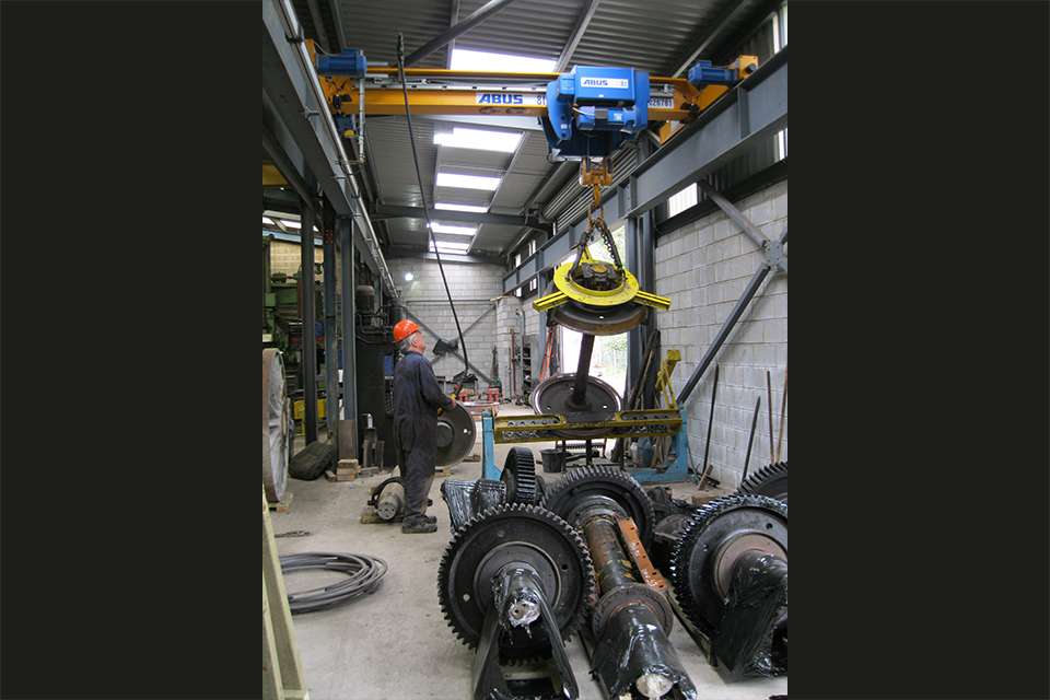 該司近期在工程車間的投資包括兩臺安全起重量8噸、配有GM3000電動鋼絲繩葫蘆的安博單梁橋式起重機。其中一臺較小的起重機,其跨度稍低于4米并配有一臺起吊高度為6米的葫蘆,被安裝在車間邊側(cè)用于部件的維修和翻新服務(wù)。
