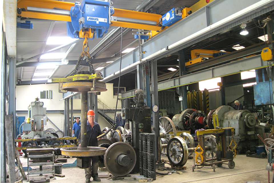 兩臺起重機均配有限位裝置,以確保起重機從任何方向接近其行程運行范圍時都會自動減速和停止。他們還具有雙速起升和運行功能,這是安博起重機的標準配置,讓操作人員能夠在需要精確定位時選擇慢速操作。起重機的交付和安裝由安博起重設(shè)備有限公司英國子公司(www.abuscranes.co.uk)負責。該司最近向歐洲之星和倫敦Crossrail項目供應(yīng)了起重機,也為各主要承包商提供了用于常規(guī)列車維護庫的起重設(shè)備,其客戶基礎(chǔ)反映出了英國正在進行鐵路基礎(chǔ)設(shè)施投資。