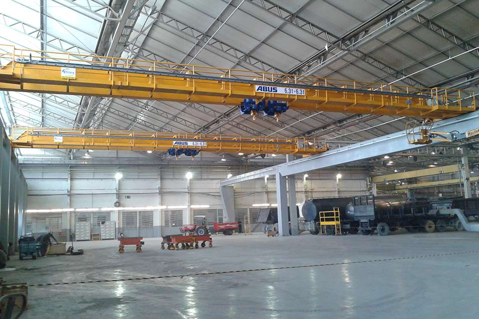 Randon公司在各個(gè)生產(chǎn)和安裝工廠中共使用了62臺電動(dòng)鋼絲繩葫蘆、113臺電動(dòng)環(huán)鏈葫蘆、19臺橋式起重機(jī)和12套HB輕型懸掛系統(tǒng)(模塊化輕型起重機(jī)系統(tǒng),用于2噸以下的負(fù)載)。