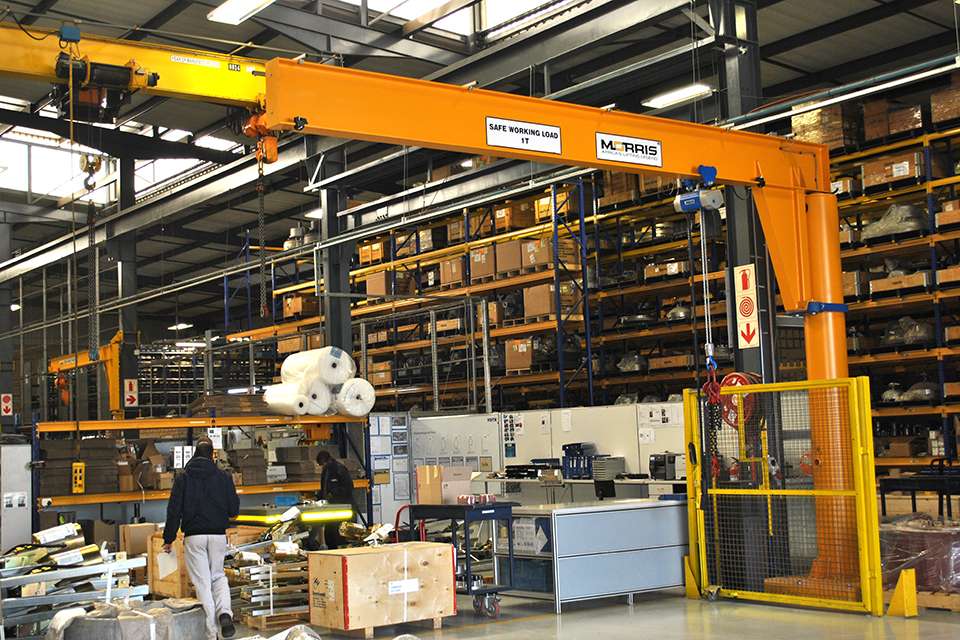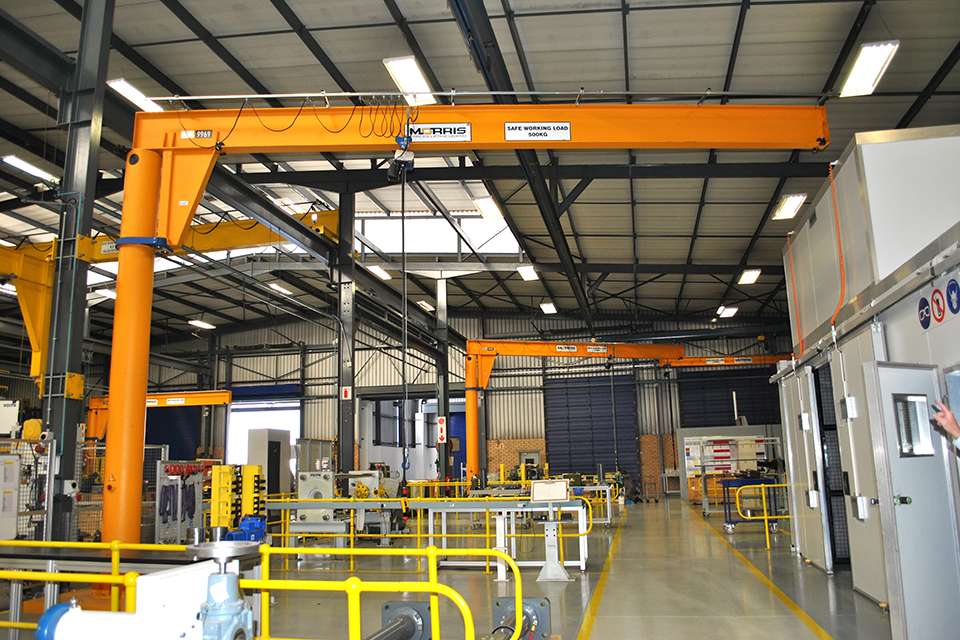 第二跨車間安裝了一臺(tái)起重量為1噸、臂長(zhǎng)6米、起吊高度3.472米并配有電動(dòng)環(huán)鏈葫蘆的安博立柱式旋臂起重機(jī)。