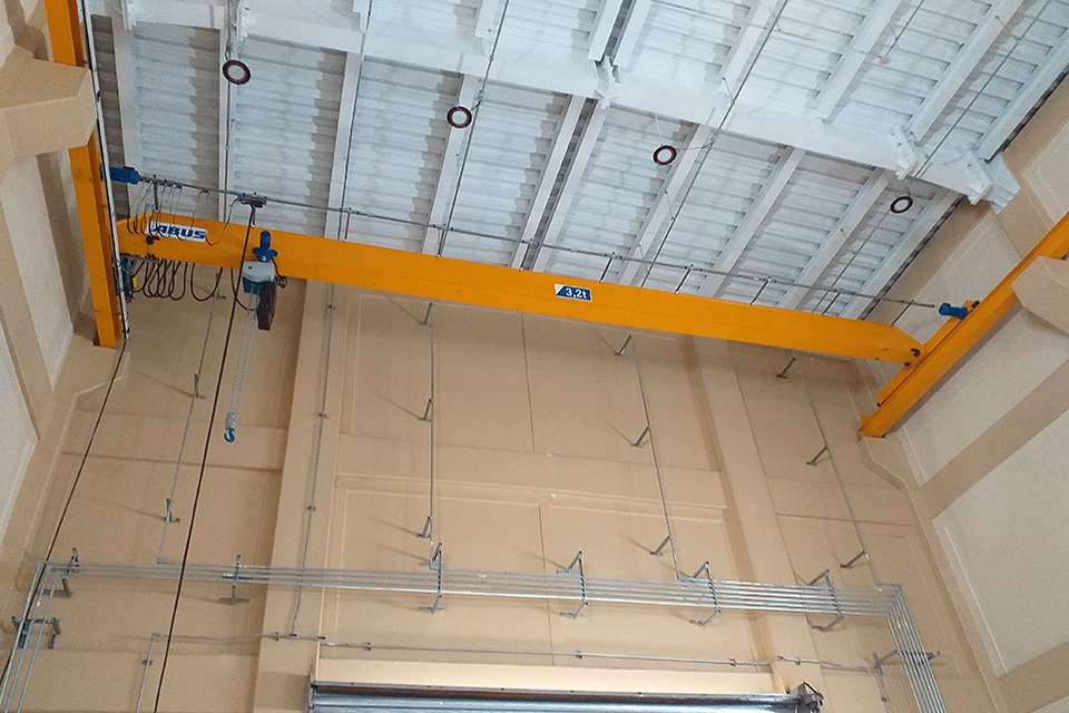 兩臺(tái)相同的ELK型單梁橋式起重機(jī)安裝于一個(gè)廠房。這兩臺(tái)起重機(jī)的額定載荷為3.2噸、跨度為12.8米。另一個(gè)廠房安裝了一臺(tái)額定載荷為4噸、跨度9.8米的ELV型單梁橋式起重機(jī)。該項(xiàng)目安裝的兩類起重機(jī)都配有電動(dòng)環(huán)鏈葫蘆進(jìn)行提升工作。配備的環(huán)鏈葫蘆是安博電動(dòng)環(huán)鏈葫蘆系列中最大的GM8型,負(fù)載能力最大可達(dá)4噸。雙鏈規(guī)格GM8的起升高度最高可達(dá)16米。尤其在低負(fù)載范圍內(nèi),特別推薦將橋式起重機(jī)與電動(dòng)環(huán)鏈葫蘆結(jié)合使用。電動(dòng)環(huán)鏈葫蘆具有使用方便、占空比高、自重低及維修方便等優(yōu)點(diǎn)。通過預(yù)配置的摩擦離合器,極易從外部設(shè)置過載保護(hù)。如果要更換鏈條,只需擰開幾個(gè)螺絲,就可以把原鏈條與導(dǎo)鏈器一同拉出,并更換新的鏈條。