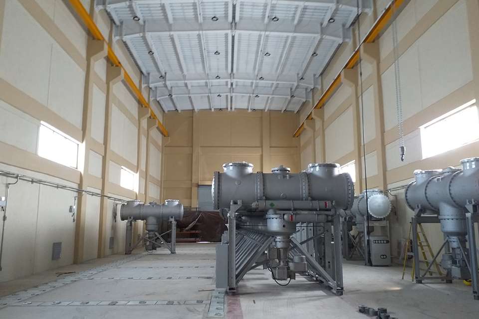 該項(xiàng)目由兩個(gè)封閉廠房組成。第一個(gè)廠房內(nèi)裝有400千伏、配備SF6斷路器的變壓變電站組件。第二個(gè)廠房裝有230千伏變電站。變電站的組裝在兩個(gè)廠房內(nèi)進(jìn)行,變壓器從那里被運(yùn)往各自的最終目的地。