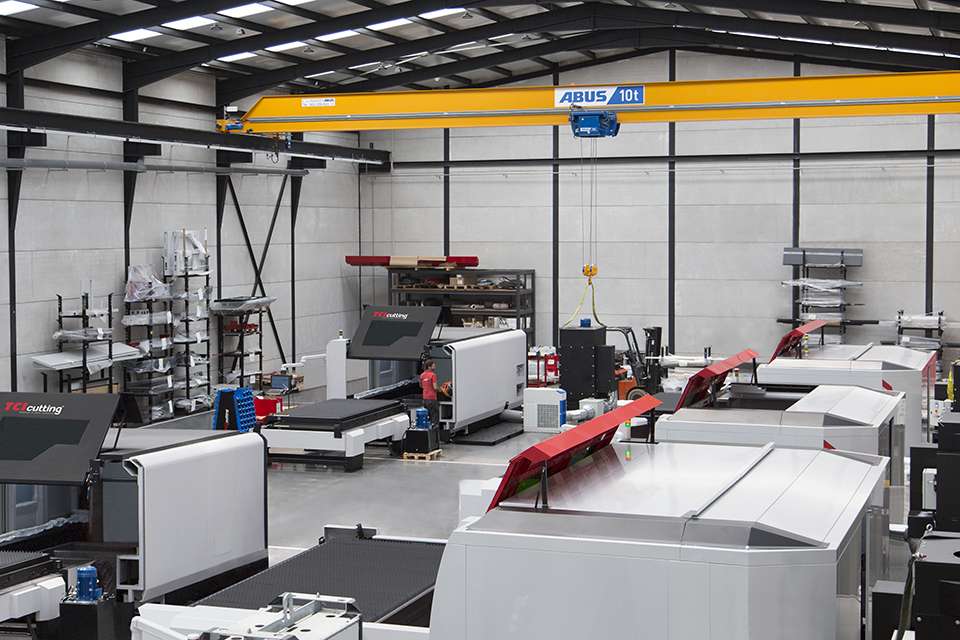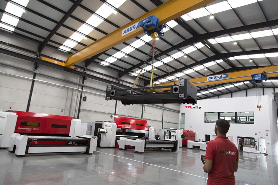 安博在西班牙的子公司ABUS Grúas與TCI Cutting一起制定了不同的解決方案。最終,TCI Cutting決定新增三臺ELK型單梁橋式起重機,這種特殊類型的起重機由焊接箱梁組成,根據(jù)起重量,跨度最大可達29.5米(跨度為29.5米時,最大起重量為5噸)。