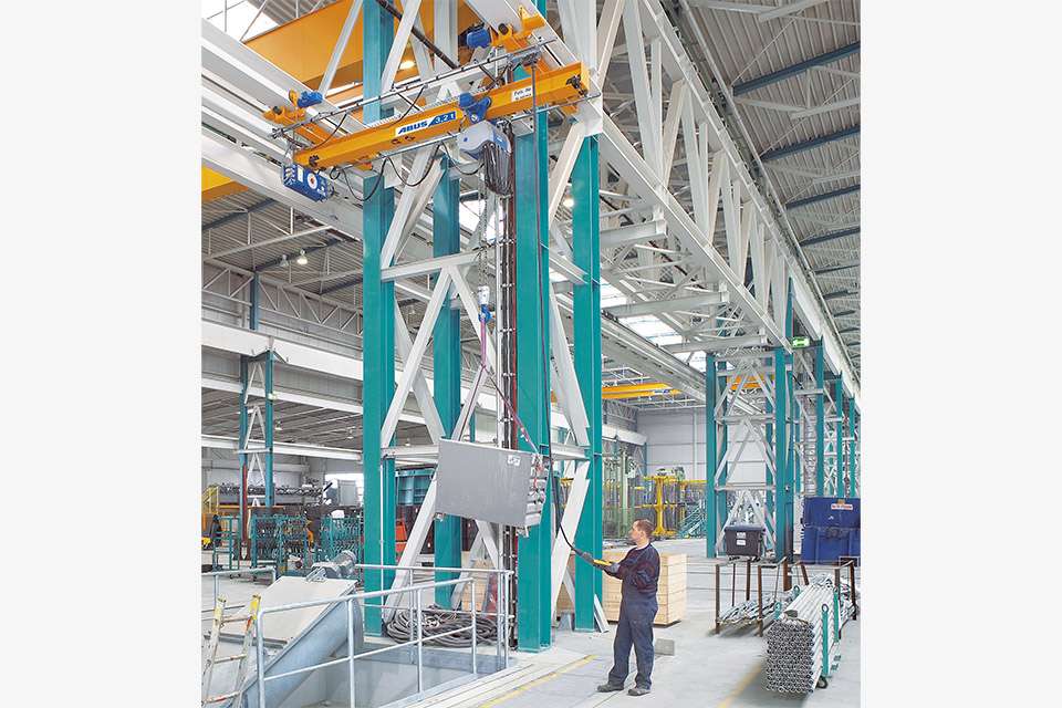 安博懸掛式起重機(jī)為在平面范圍內(nèi)實現(xiàn)無障礙物料運輸提供了新的可行性。起重機(jī)軌道可直接安裝于廠房頂部,大大降低了自身結(jié)構(gòu)高度,可以最大限度地利用室內(nèi)空間。