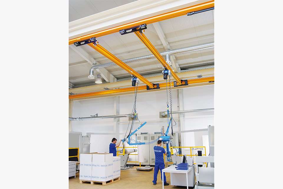 相比于安博輕型單梁懸掛系統(tǒng)EHB,安博輕型單梁懸掛系統(tǒng)EHB-X可以實(shí)現(xiàn)更高的起升高度。這是因?yàn)槠鹬貦C(jī)梁是在起重機(jī)軌道中間運(yùn)行,而非在起重機(jī)軌道下方,因此起重機(jī)的安裝高度就相當(dāng)于起重機(jī)的總高度。如果您對起升高度有很大需求,EHB-X將是您的最佳選擇。