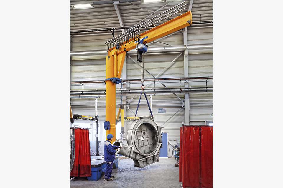 立柱式旋臂起重機(jī)VS設(shè)計為直接安裝在地面上。旋轉(zhuǎn)范圍為360°,旋臂長度可達(dá)10米,安全起重量(SWL)最高可達(dá)6.3噸。能在低矮的廠房內(nèi)起吊貨物至您所需的高度,優(yōu)化您的使用空間。除標(biāo)準(zhǔn)配置外,您還可以額外配置電動旋轉(zhuǎn),電動行走和移動控制。