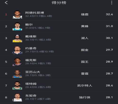 本季不知哪天的得分榜,好像不是按身高來的吧。