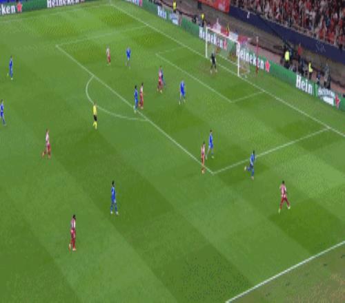 第52分鐘,奧林匹亞科斯球員赫澤右路傳中,門前塔雷米力壓阿諾德頭球破門,扳回一球,比分變成了2-3,比賽的勝負重新有了懸念。