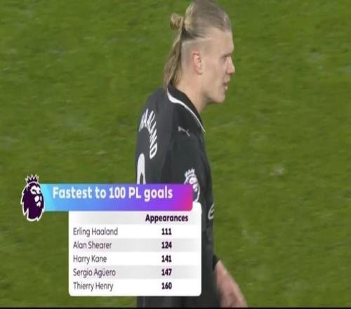 撰稿/寒冰經(jīng)歷了連續(xù)3場(chǎng)的“進(jìn)球荒”之后,哈蘭德終于刷新了英超進(jìn)球效率紀(jì)錄。富勒姆的克拉文農(nóng)莊球場(chǎng),見(jiàn)證了英超史上最快達(dá)成100球的傳奇時(shí)刻。年僅25歲的哈蘭德僅用111場(chǎng)就在英超100球,打破了希勒(124場(chǎng))的紀(jì)錄,也領(lǐng)先凱恩(141場(chǎng))、阿圭羅(147場(chǎng))、亨利(160場(chǎng))、薩拉赫(162場(chǎng))等巨星,空前的門(mén)前效率已載入英超史冊(cè)。